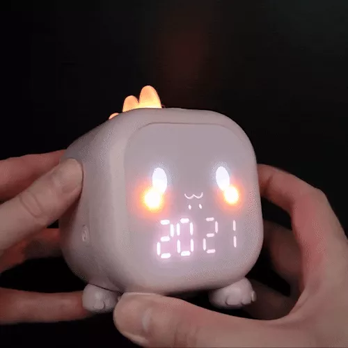 this dinosaur alarm clock is amazing. my child adores the cute design and it has quickly become a favorite in their room. the voice control feature is easy to use and adds a fun element to setting the alarm. the night light is soothing and provides a nice, soft glow that helps my child feel safe at night. the alarm is effective but not too loud, waking my child gently. the clock is also very well-made and durable, so i know it will last a long time. it has made our mornings much smoother and more enjoyable. highly recommend this clock to other parents.